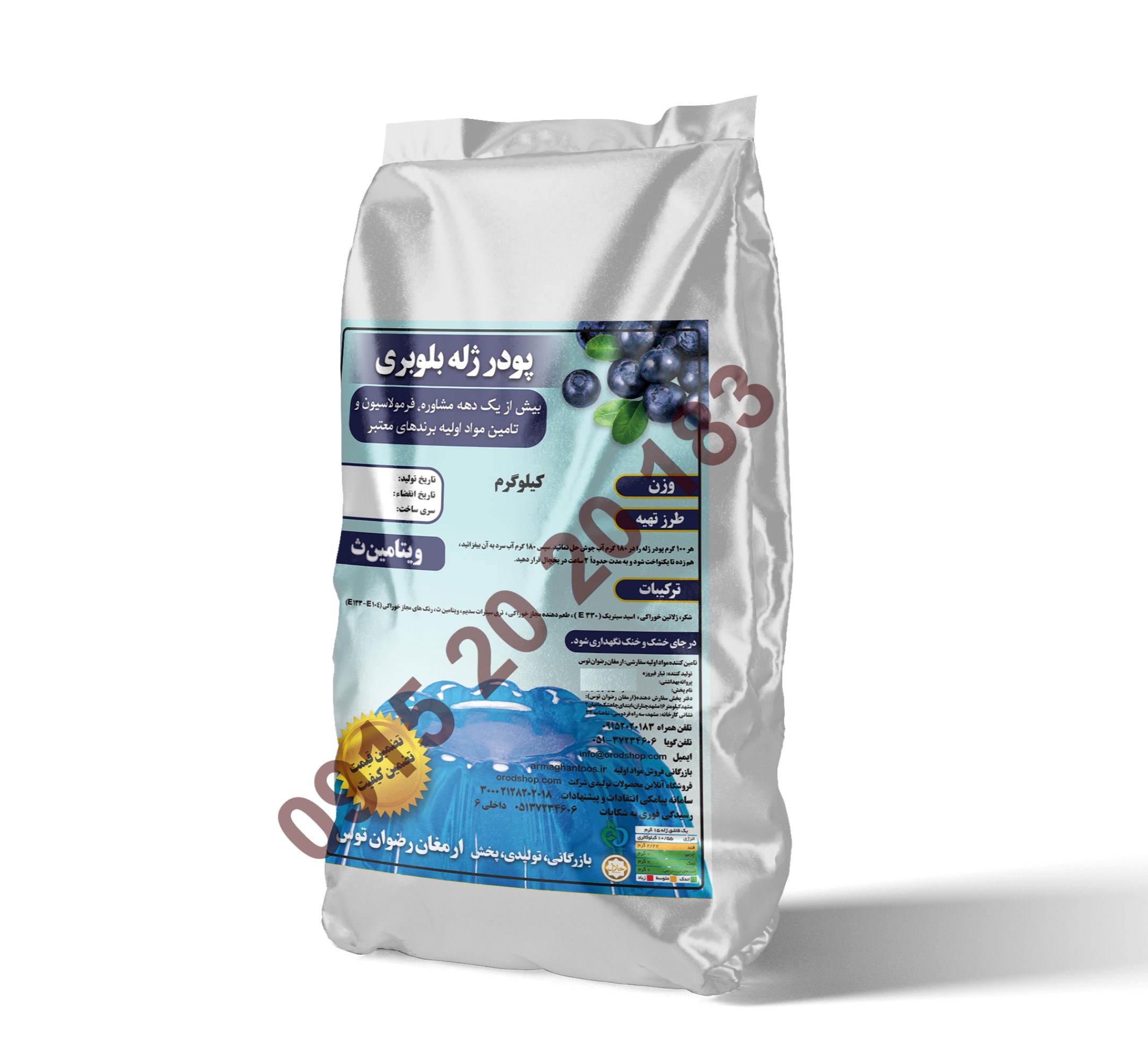 پودر ژله بلوبری 2 کیلویی ویژه هتل ها و رستوران ها محصولی از شرکت ارمغان رضوان توس